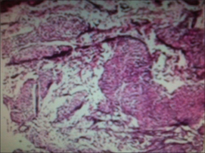 Histological analysis of biopsy specimens from the lesion showed caseating granulomas with giant cells and lymphocytes suggestive of tuberculosis verrucosa cutis TVC [Figure 2]. Smear and culture from skin biopsies for Mycobacterium tuberculosis were negative.